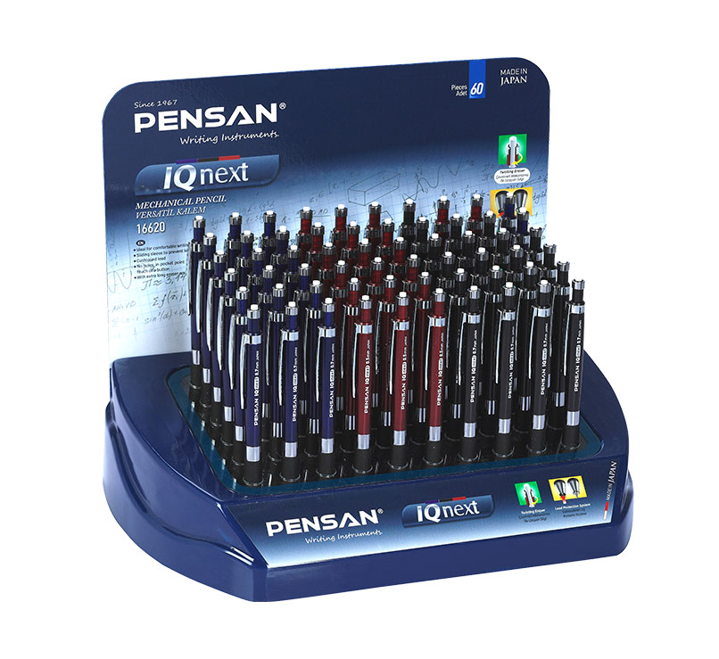 Pensan IQ Next Versatil Kalemler çocukların sağlığı dikkate alınarak yüksek kalite standartlarında Japonya’da üretilmiştir.Ucun kırılmasını önleyen saklama sistemi ile dayanıklıdır ve kolay kırılmaz. Saklanabilen uç sayesinde kolay taşınır. Konforlu ve ergonomik bir tutus için yuvarlak bir tasarıma sahiptir. Konfor, sadelik ve yüksek performans arayan tüketicilerimizi Pensan IQ Next Versatil Kalemlerimizin modern tarzı ile buluşturuyoruz